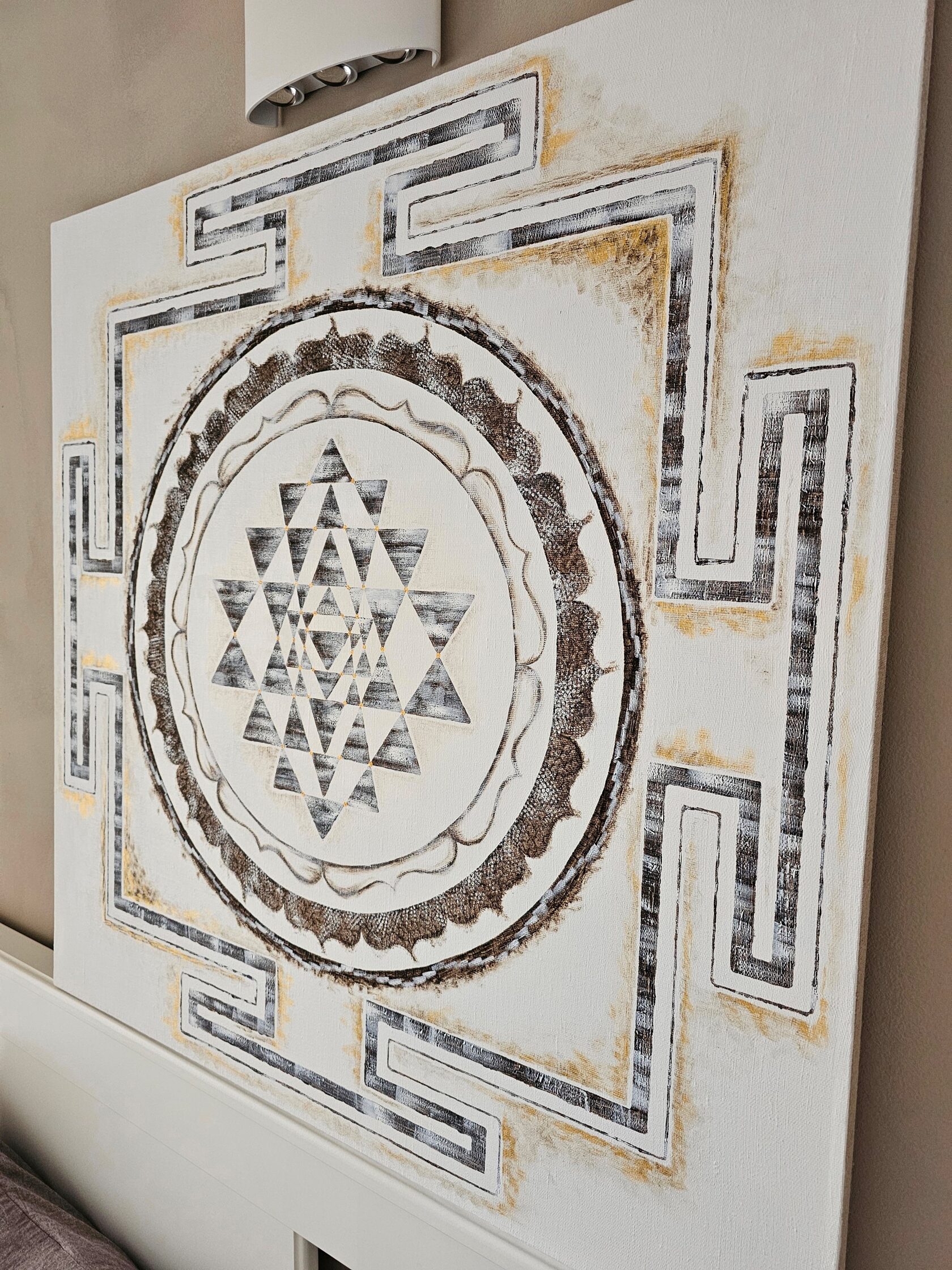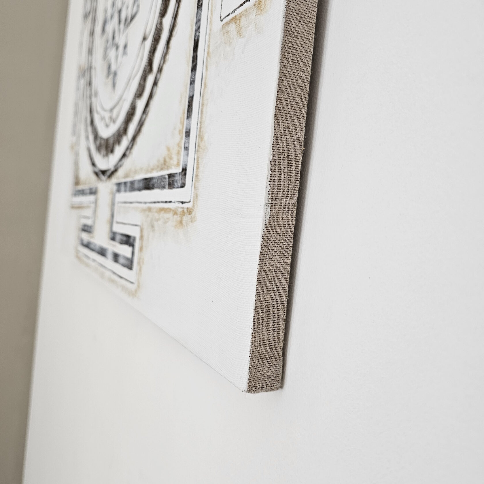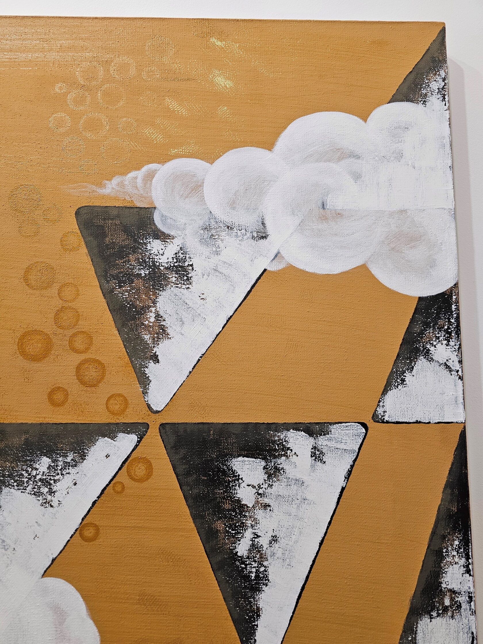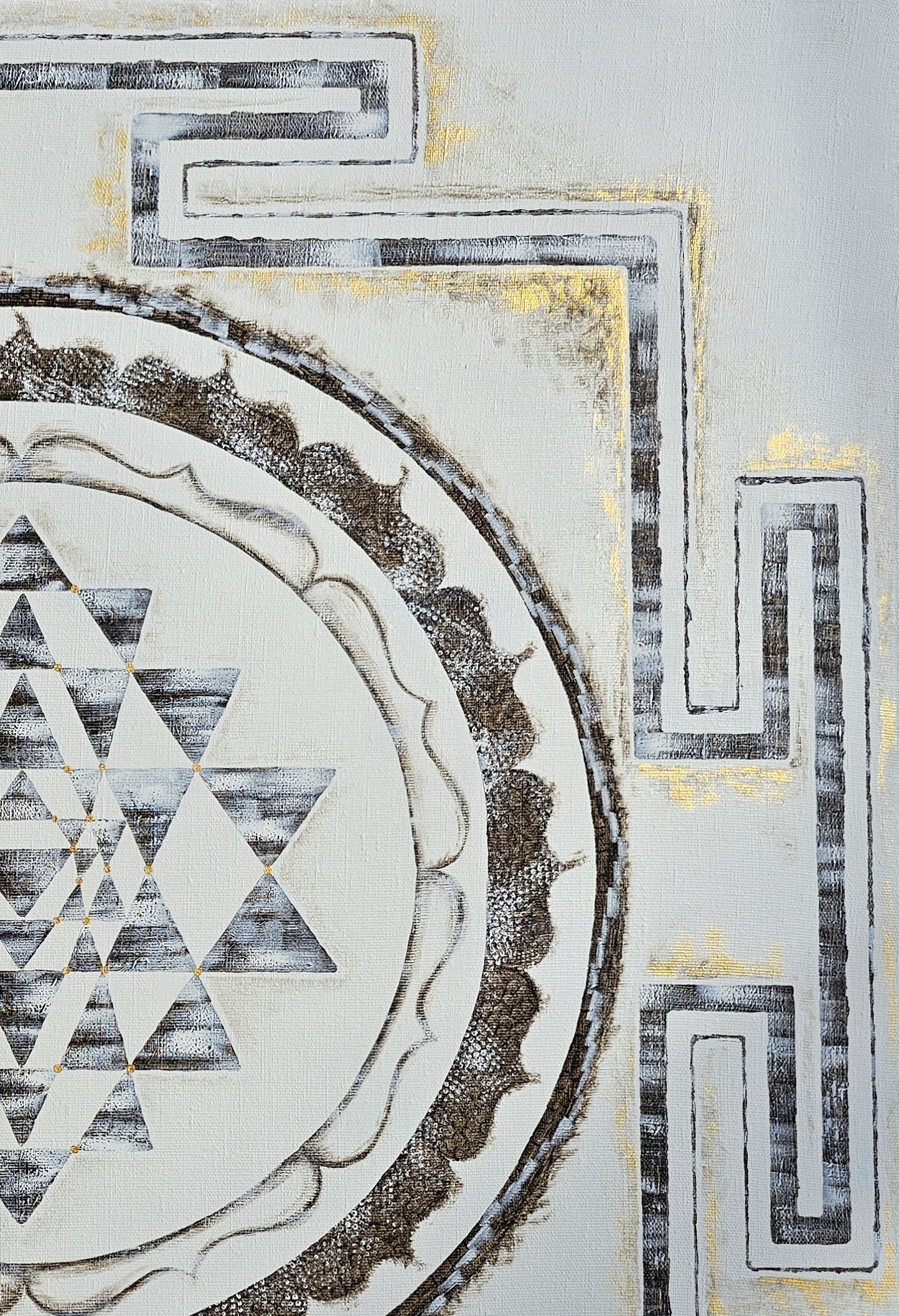 Ромбический орнамент и природные цвета становятся отправной точкой для визуальных экспериментов, где каждый элемент картины насыщается новыми смыслами и ассоциациями.