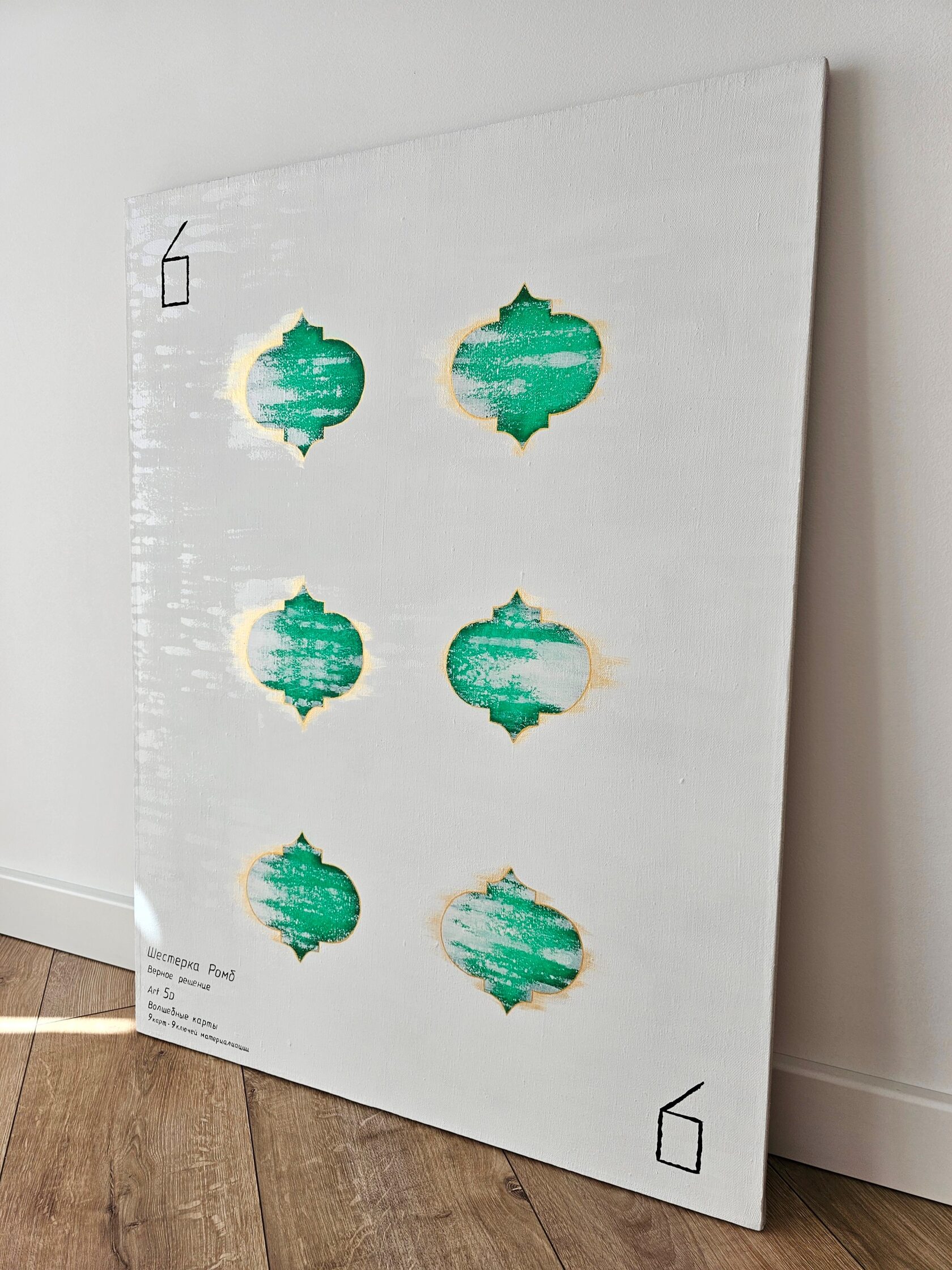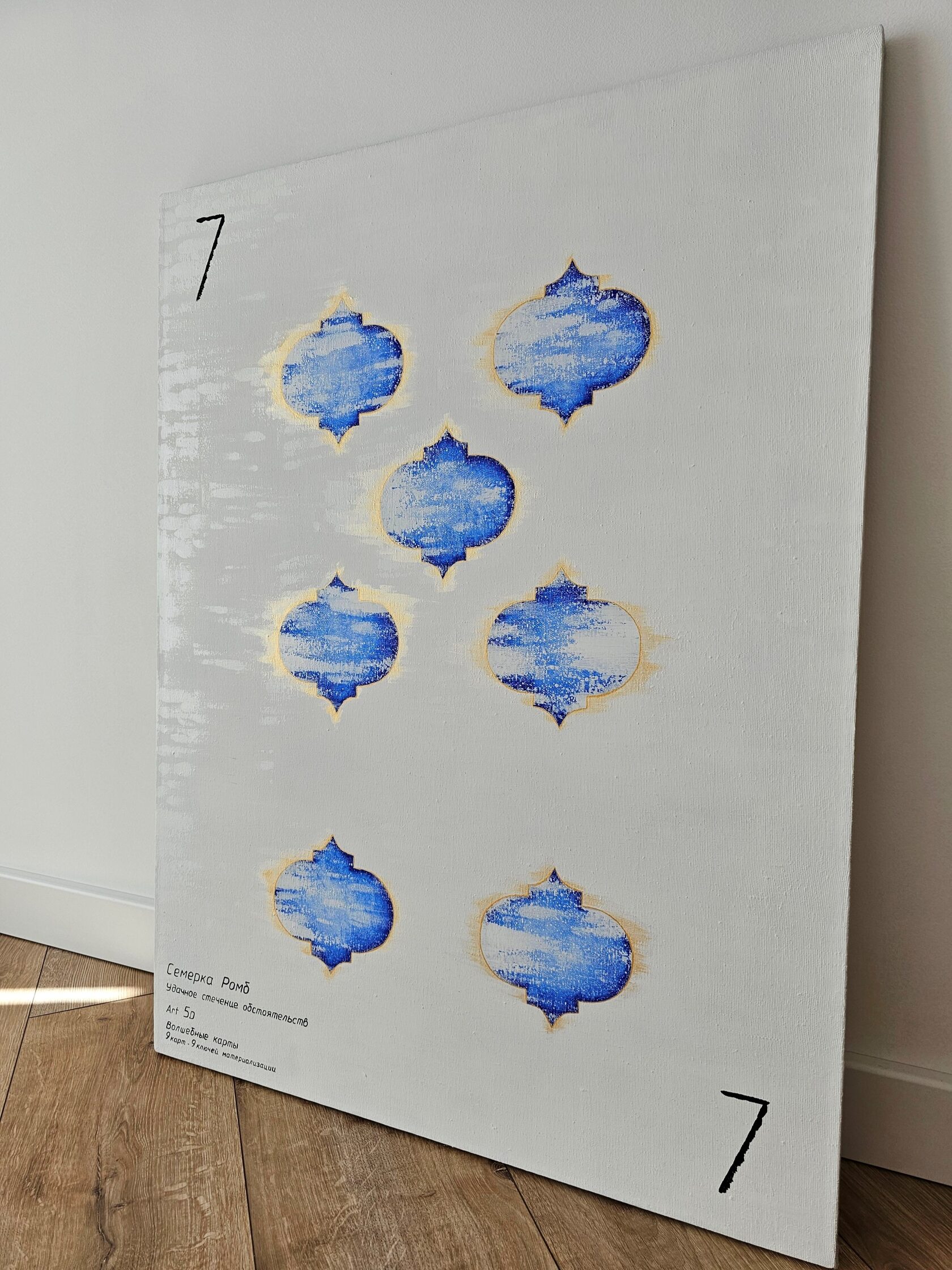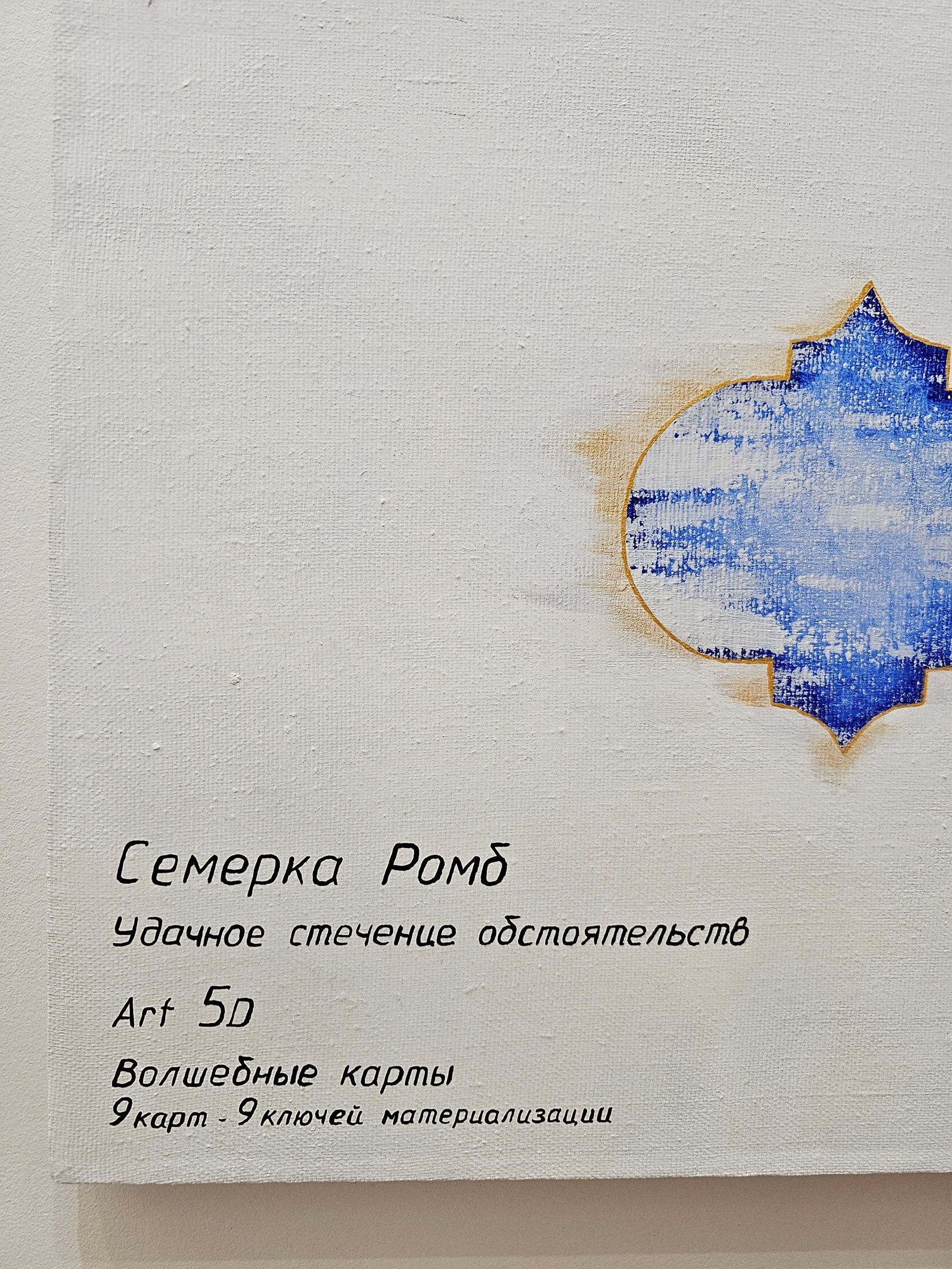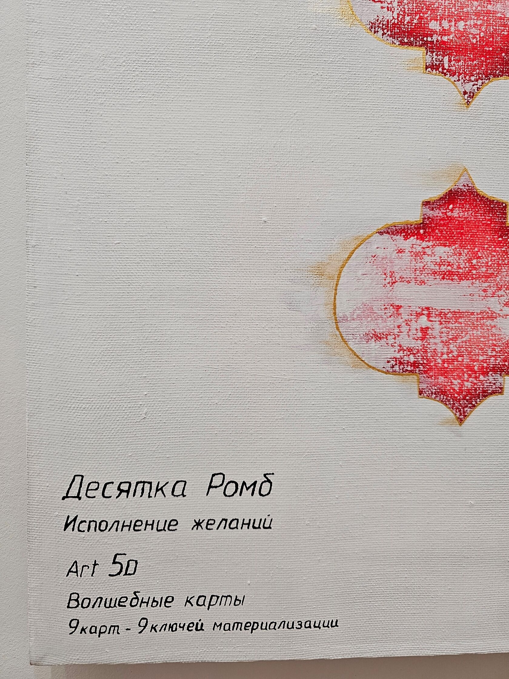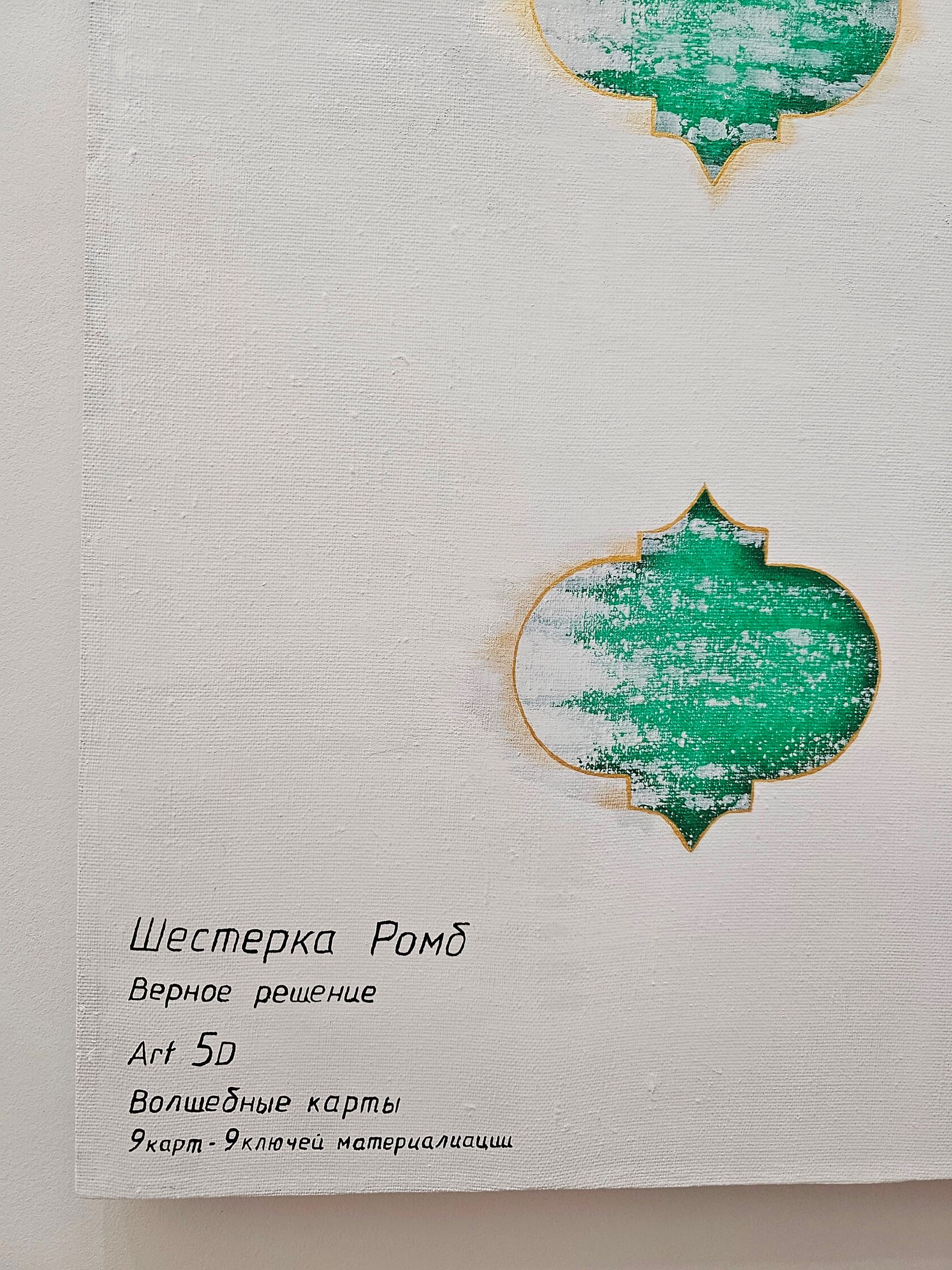 Каждая карта серии, этап развития и движения к цели. Ромб как магический элемент, активирует подсознательные процессы у наблюдателя. Фигура и цвет карты направлены на чувствование наблюдателя и отклик на глубинном уровне.