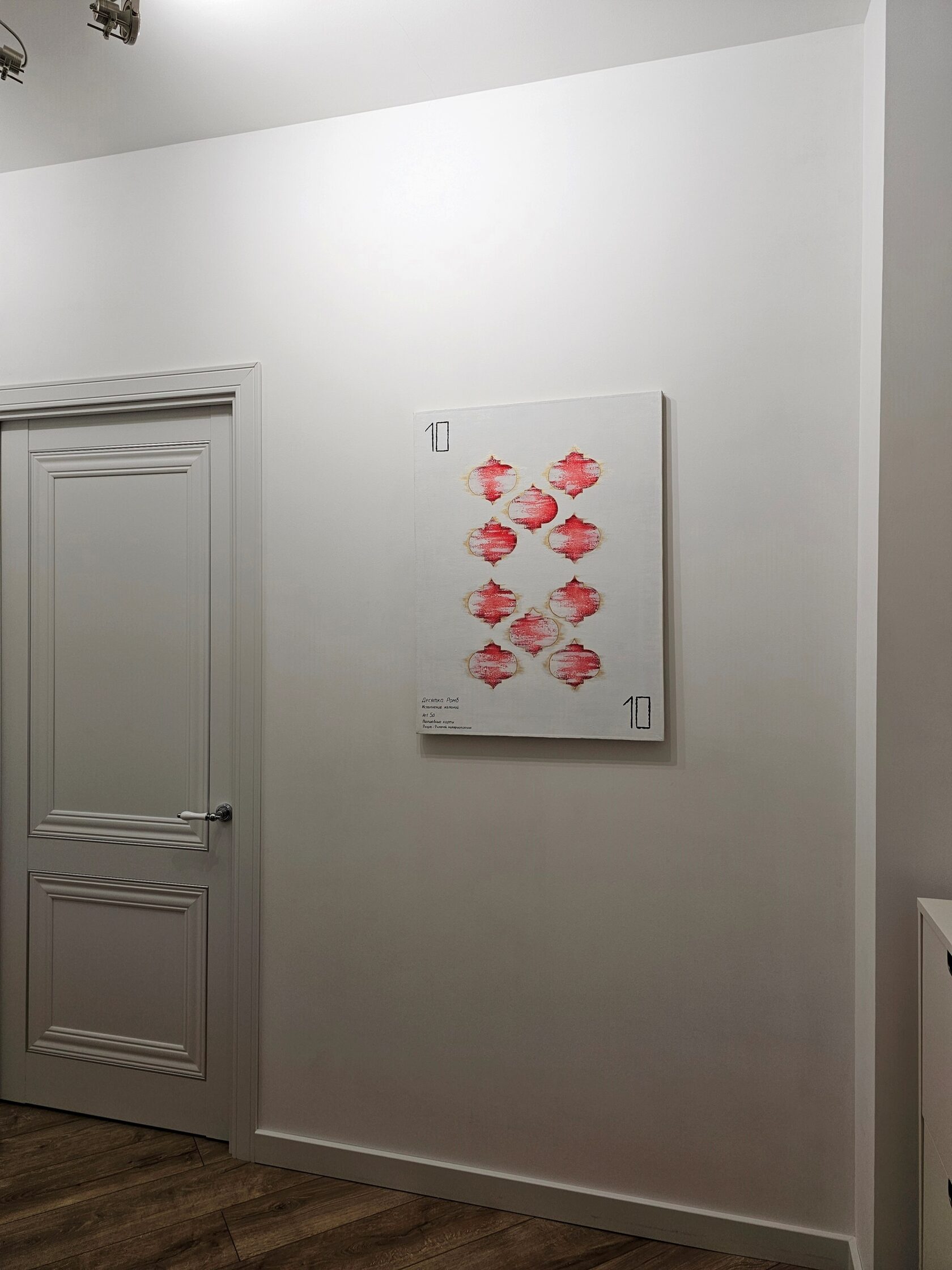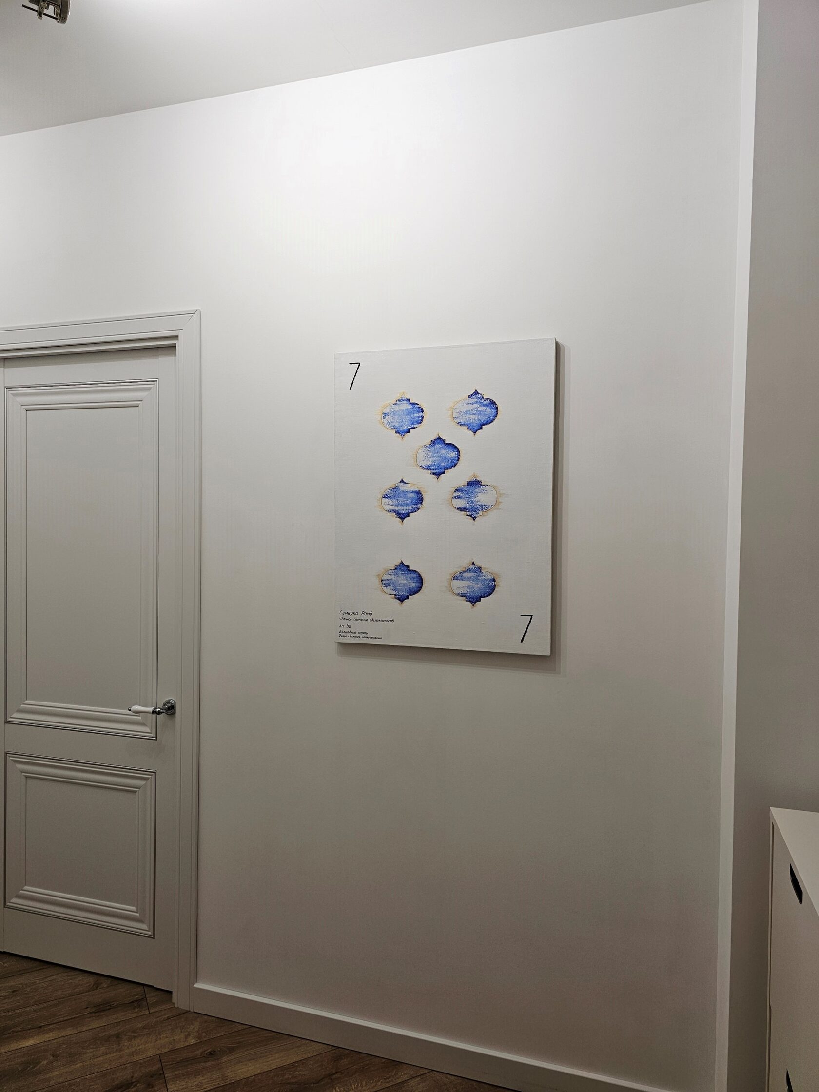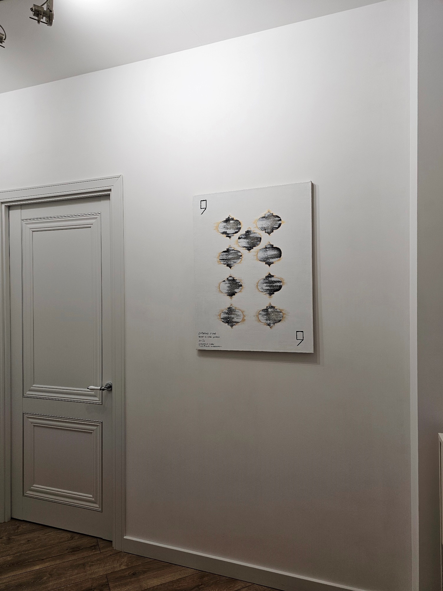 Картины вызывают ассоциации с минимализмом и декоративностью традиционных мотивов, позволяя зрителю увидеть знакомый предмет интерьера в новом свете.