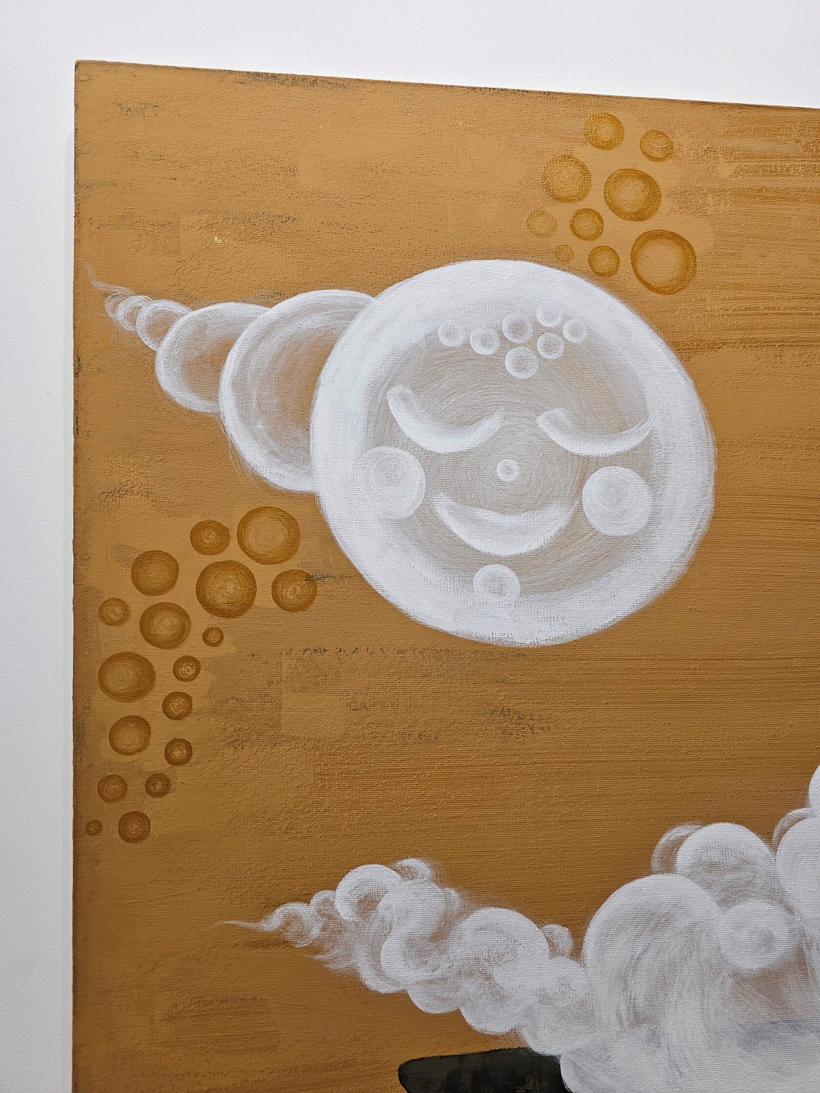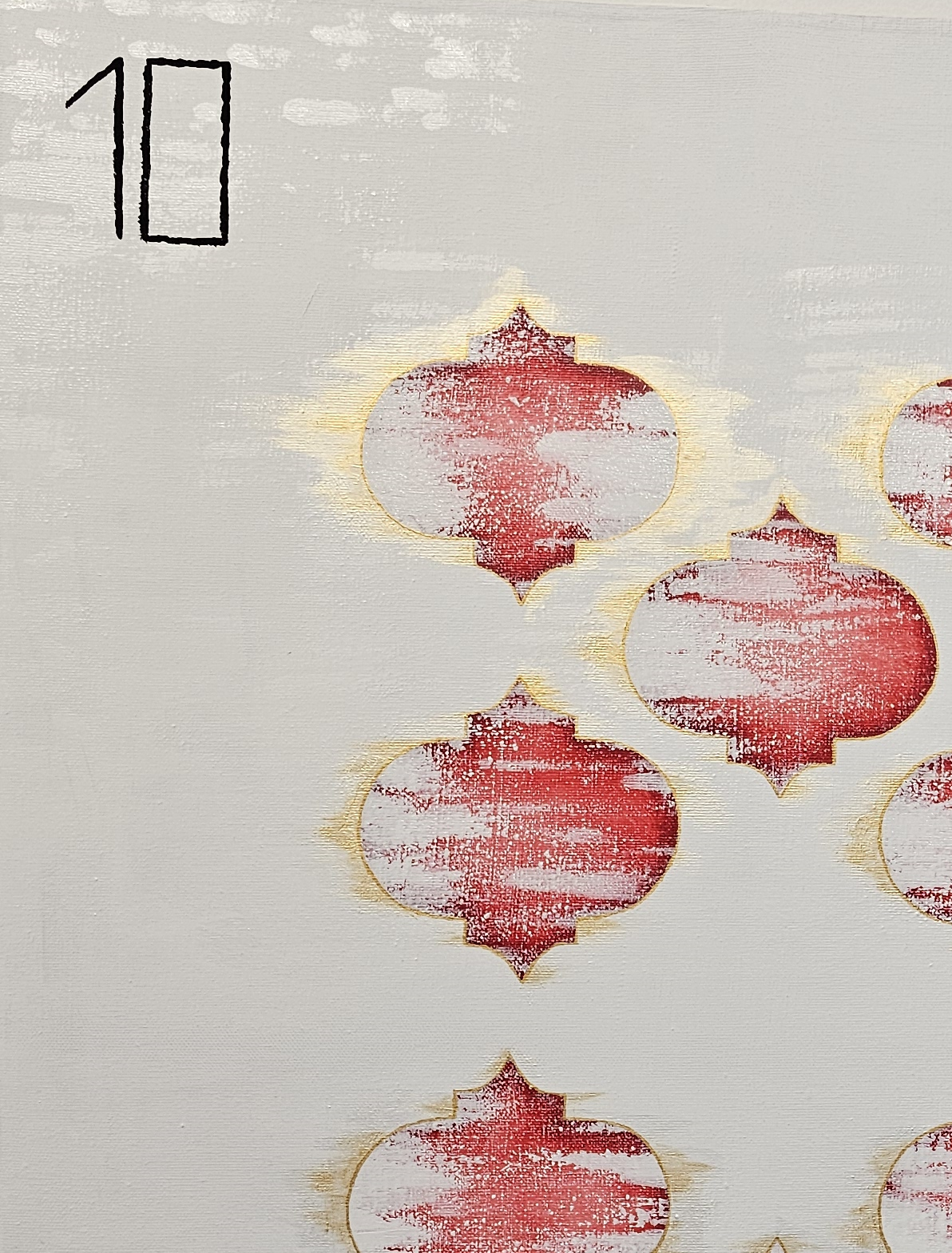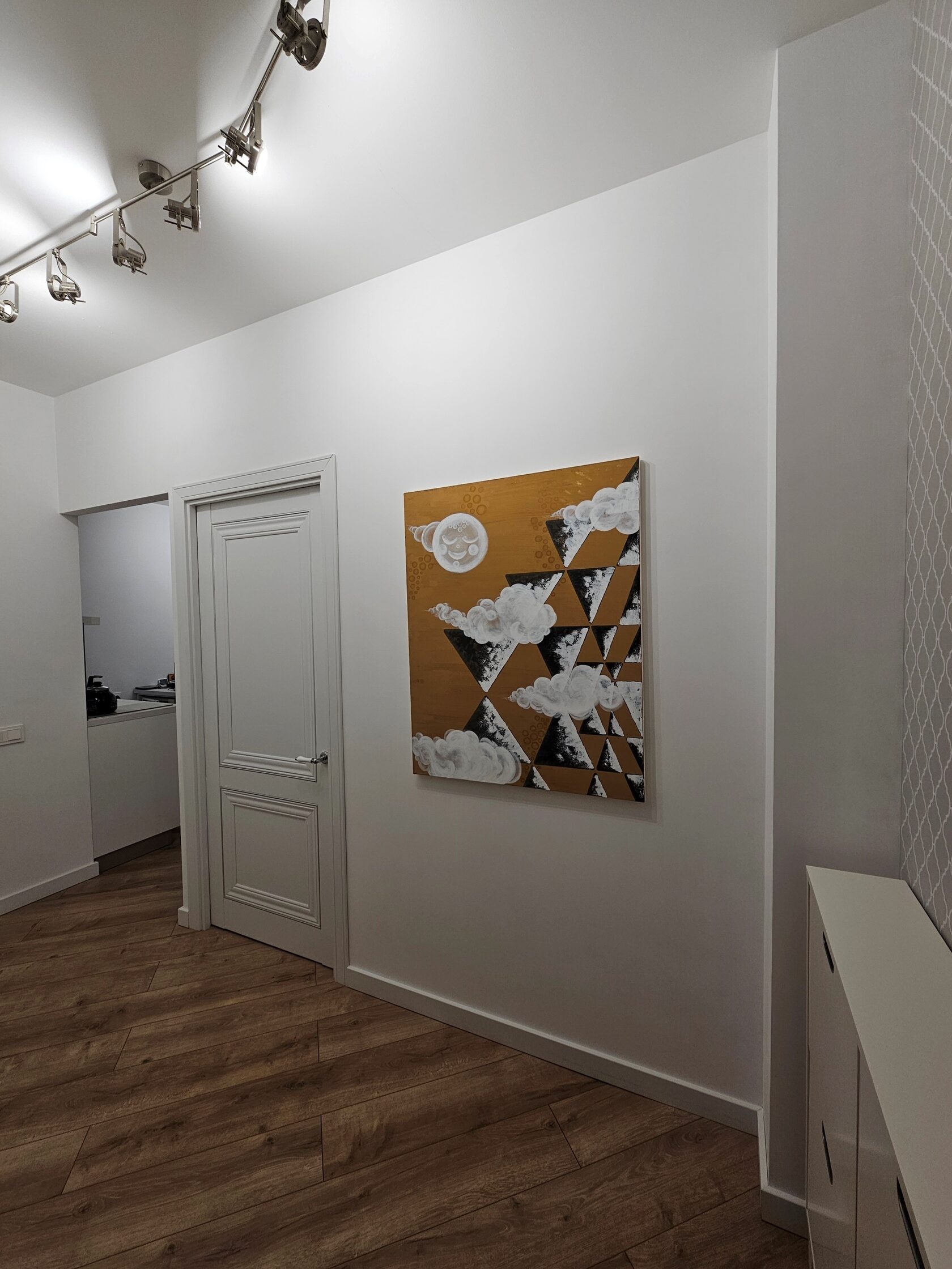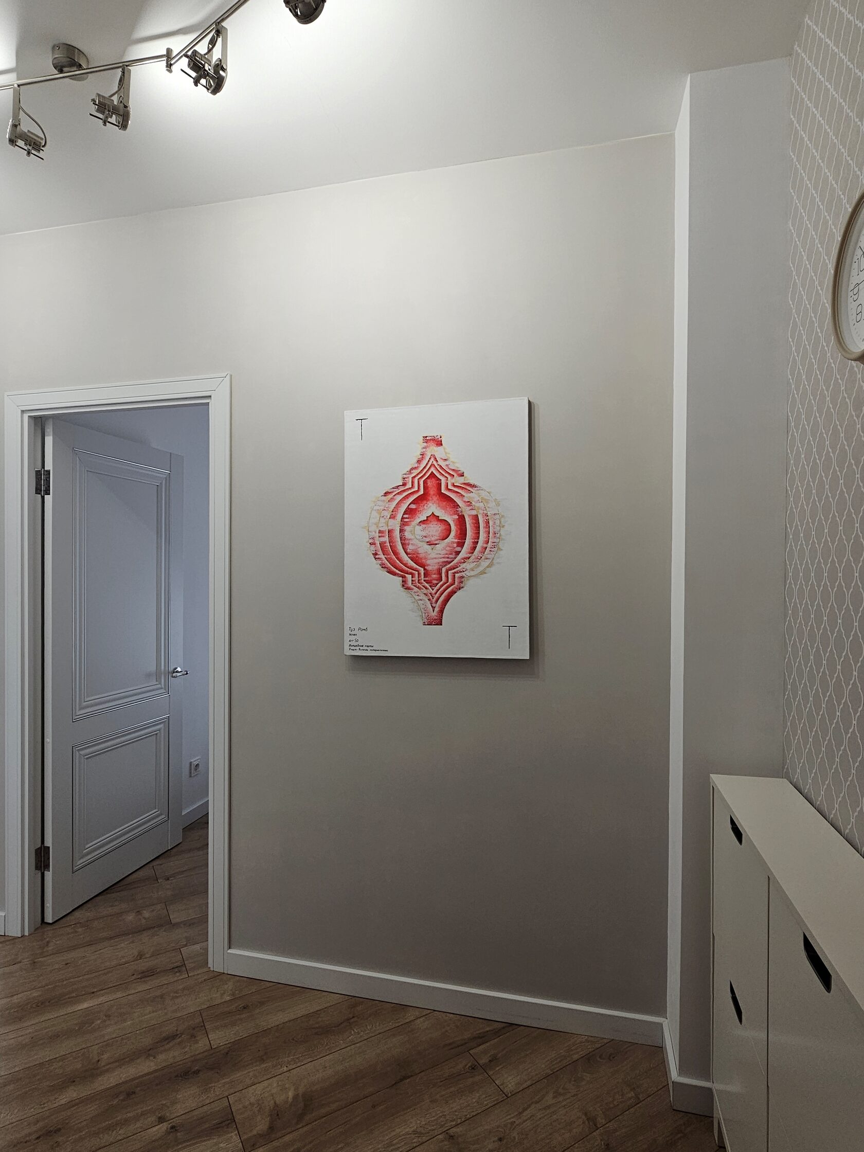 Картины вызывают ассоциации с минимализмом и декоративностью традиционных мотивов, позволяя зрителю увидеть знакомый предмет интерьера в новом свете.